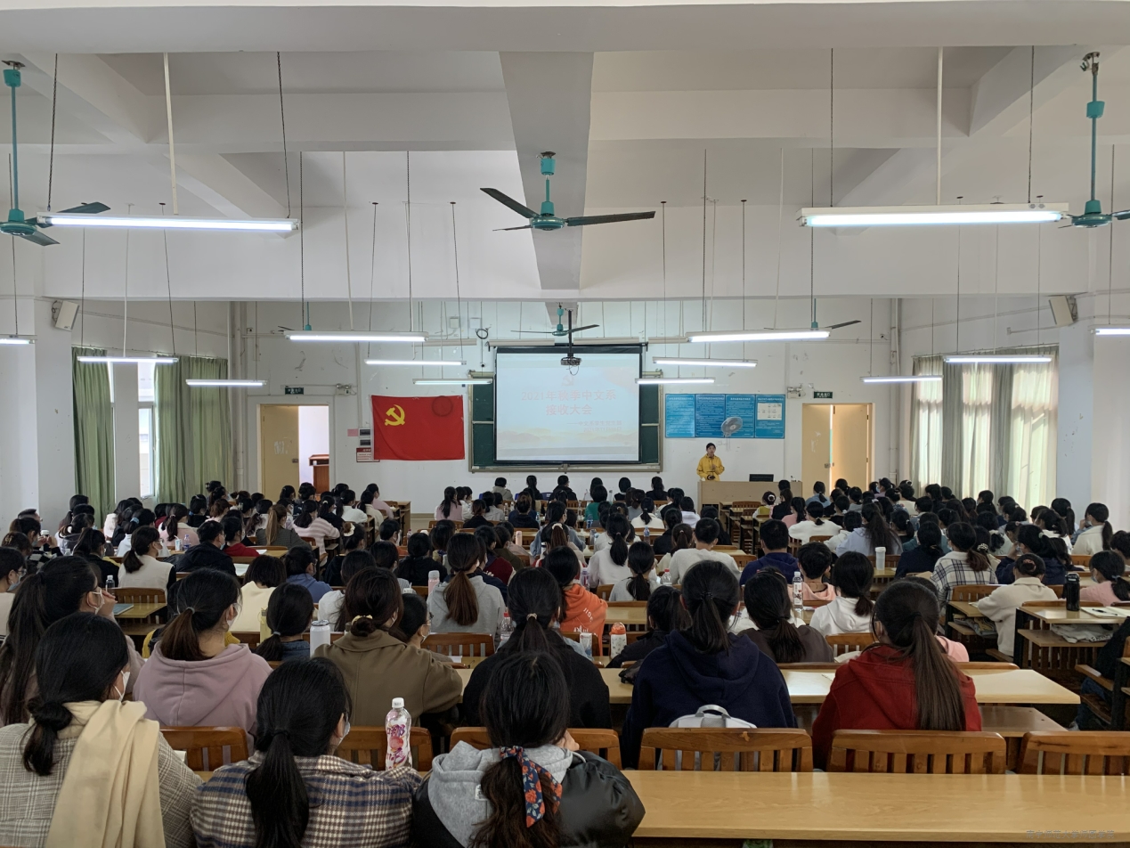 11月28日上午,中文系学生党支部在教学楼4-308教室召开2021年秋季预备党员接收大会。中文系学生党支部书记吴金翘与全体在校党员同志、发展对象参加会议。