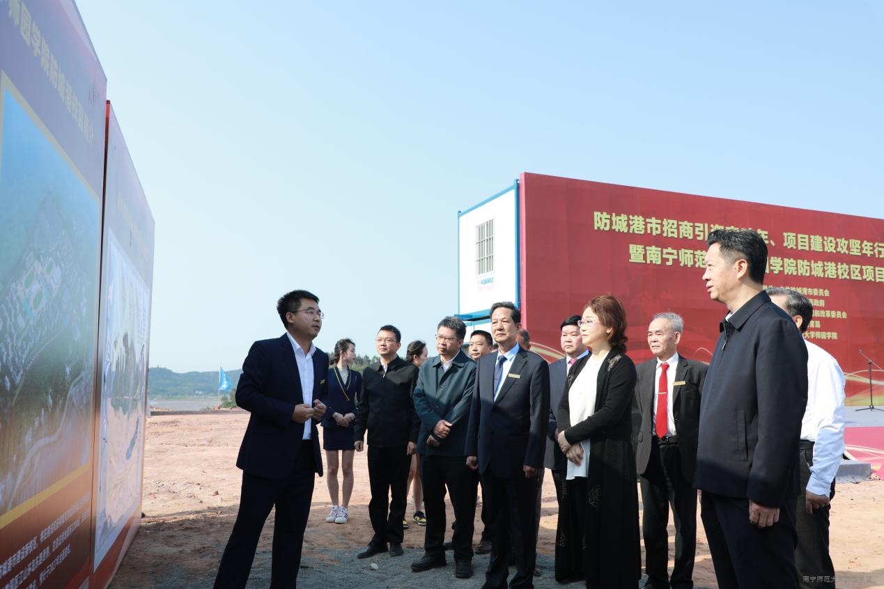 防城港市主要领导还认真听取了学院副院长、防城港校区项目指挥部常务副指挥长申书飞对pc加拿大最准预测防城港校区项目的介绍。对学院投入41.5亿元,以高标准、高质量、高效率建设可容纳22000名学生的现代化校区,力争2024年9月实现防城港校区第一批学生入驻,5年内全面完成校园建设,使pc加拿大最准预测成为一所国内知名、风格独特、环境优美的综合性大学的做法表示高度认同,对学院将中华优秀传统文化与现代文明结合,传承发展民族地区特色表示高度赞赏。奠基仪式后,黄江市长召集并主持了防城港市相关部门与我院董事会、党政领导班子的会商会议,统筹解决我院防城港校区建设的难点问题,为我院下一阶段开展大规模建设奠定了基础。
