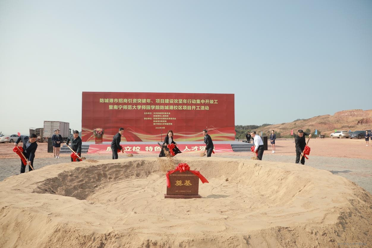 防城港市主要领导和学院梁仲荣董事长共同挥锹铲土为项目培土奠基