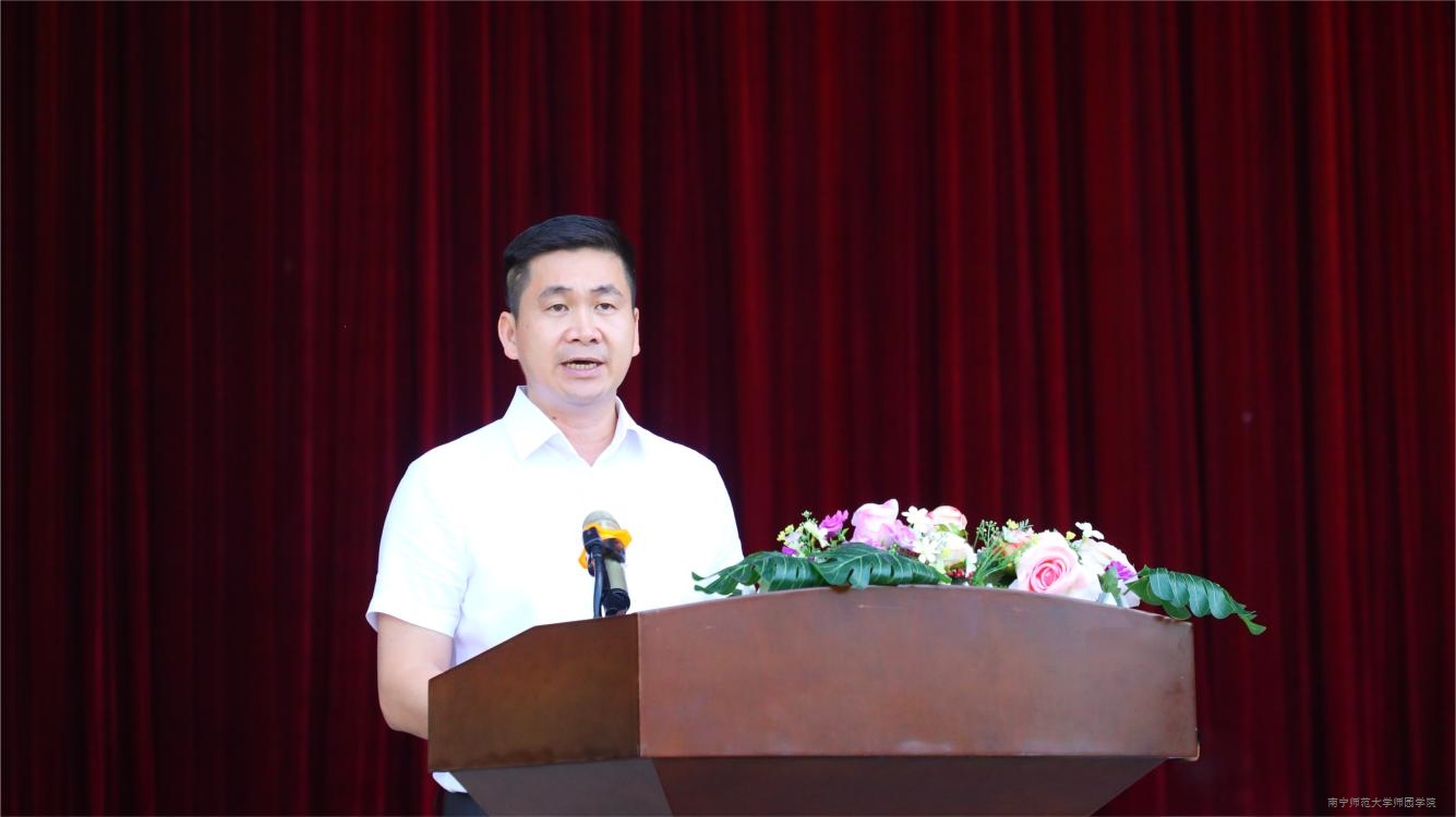 梁秋副书记在大会上作重要讲话。他指出,今年的军训有着特殊的时代分量,不仅是大学的必修课,更是一场跨越80年的红色精神对话。训练场上,同学们的每一次坚持、每一次协作,都是对革命先辈忠诚坚定、不怕牺牲、艰苦奋斗精神的最生动传承。为进一步启发2025级新生用智慧和奋斗来回答“如何强国”的时代命题,梁秋副书记向全体2025级新生提出三点希望:一是把“坚持”融入血脉,在学业探索中扎根。以百折不挠的毅力与坚韧不拔的精神面对未来的学习和生活,让坚持成为青春最坚实的底色。二是把“团结”刻进品格,在集体生活中成长。在集体中发光发热,在互助、互爱中共同成长、共同进步,珍惜同为师园人的情谊,让团结成为青春最美的和声。三是把“责任”扛在肩膀,在时代浪潮中担当。把个人理想融入专业学习,让青春梦想扎根民族复兴,努力成为有理想、敢担当、能吃苦、肯奋斗的新时代青年。
