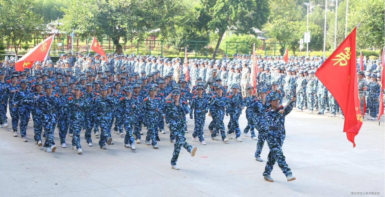 上午9时30分,在庄严肃穆的升旗仪式后,2025级新生身着迷彩服,以连队为单位依次进行汇报,接受主席台领导、师生检阅。他们以整齐的步伐踏出时代的节拍,用嘹亮的口号喊出内心的豪情。向在场的师生们展示了军训成果,展现出师园学子军训磨砺后绽放的青春光彩与昂扬向上的精神风貌。随后,表演方块队依次出场,捕俘刀方阵协调统一、利落干脆;刺杀操方阵气势磅礴、豪情壮志;手语方阵蓬勃向上、青春朝气;捕俘拳方阵英姿飒爽、自信昂扬;战术突击方阵锐不可当、雷霆万钧。他们以精彩表现赢得阵阵掌声和喝彩声。
