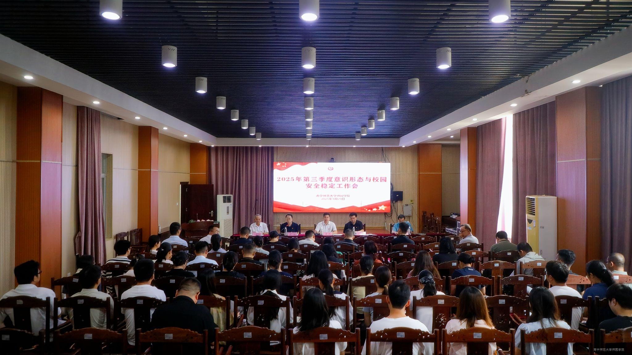 9月29日上午,我校在行政综合楼12楼第三报告厅召开2025年第三季度意识形态与校园安全稳定工作分析研判会。学校党委副书记梁秋(主持党委工作),党委副书记、常务副校长李剑喜,纪委书记、副校长庞俊,副校长李德正,教学总督导卢敏秋出席会议;全体中层干部,各部门负责人,各党总支书记、各直属党支部书记,全体辅导员参加会议。会议由庞俊主持。