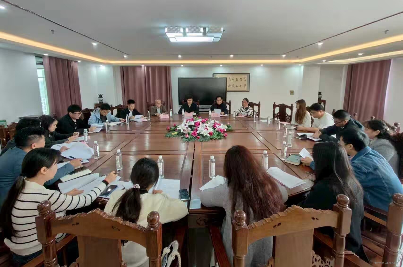 为保障学校2026年迎新晚会高效有序推进,切实为全校师生呈现一场集思想深度、艺术魅力与观赏价值于一体的文化盛会。10月24日上午,我校2026年迎新晚会筹备工作会议在行政综合楼10楼1002会议室召开。学校党委副书记梁秋(主持党委工作),党委副书记、常务副校长李剑喜,教学总督导卢敏秋及学校2026年迎新晚会工作领导小组成员、筹备工作组成员参加会议。会议由李剑喜常务副校长主持。